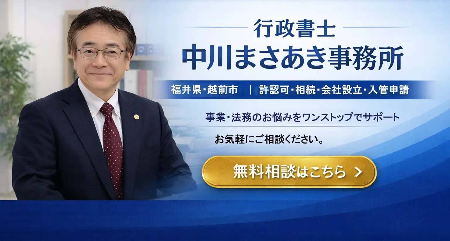 「行政書士中川まさあき事務所」代表の中川正明と申します。